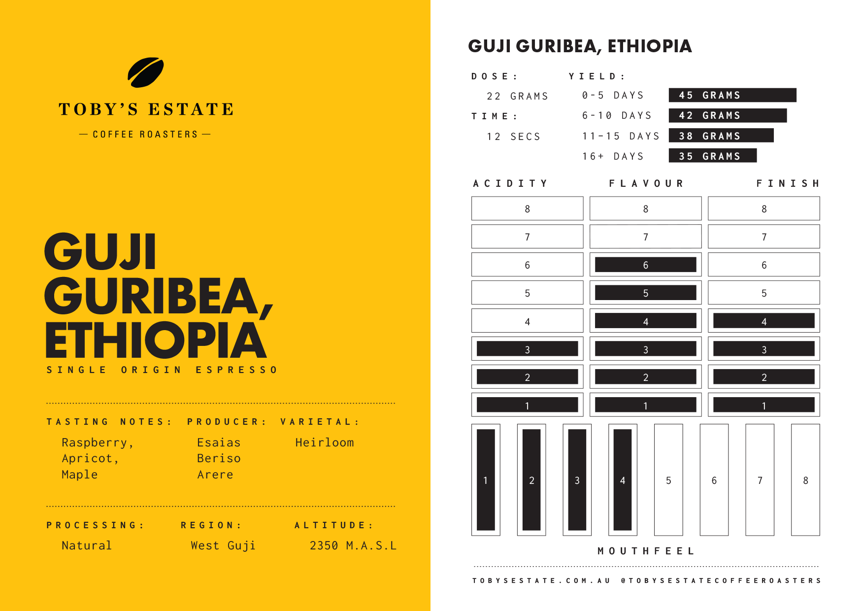 We’ve brought Guribea in as an espresso to showcase what Guji is doing right now, leaning into a profile that evolves as it ages - starting brighter with fresh berries, then settling into richer, more complex territory with berry compote tones and deeper chocolate notes.