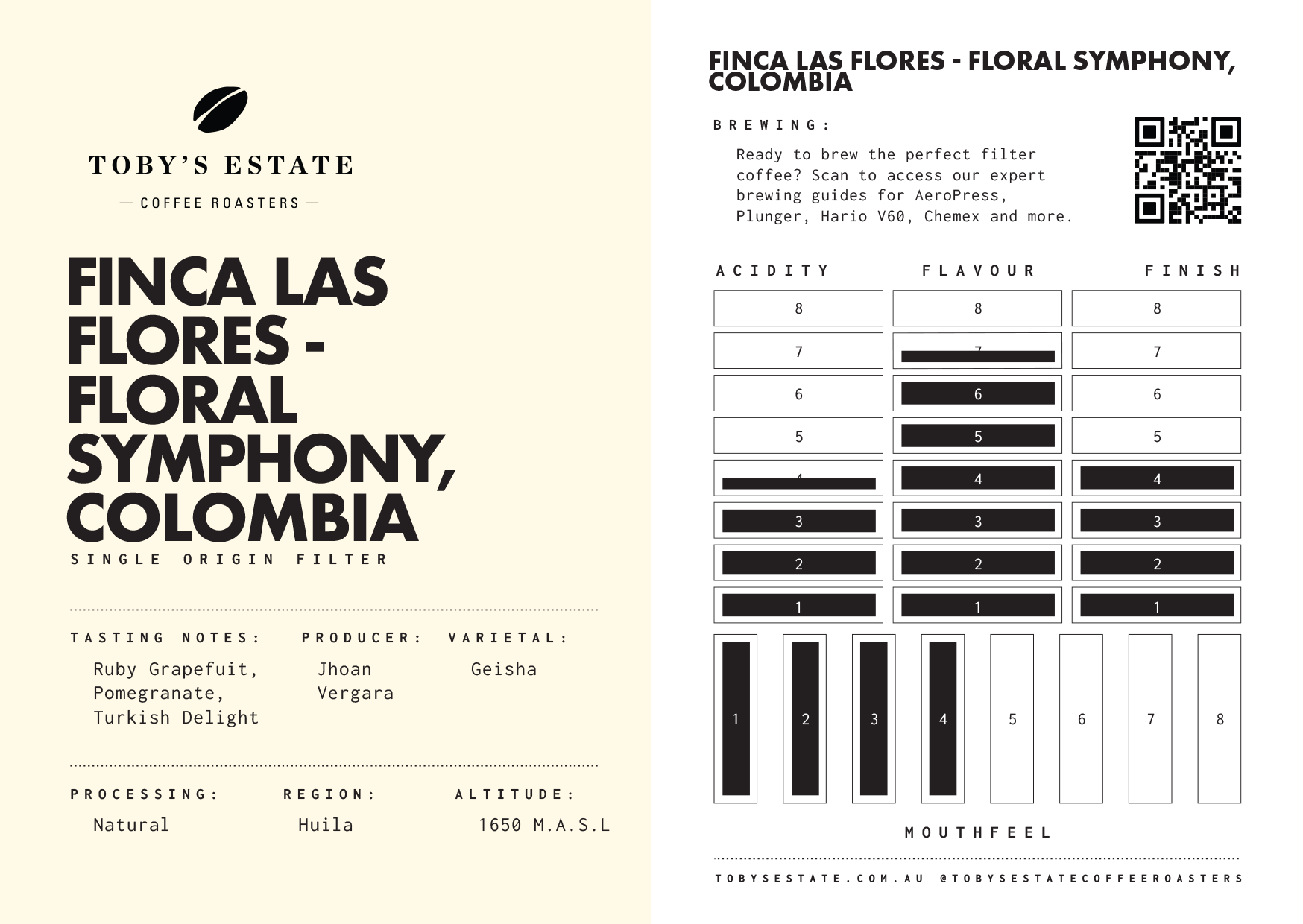 Floral Symphony leans hard into its name, with a profile that reads distinctly botanical from the first sip. What you’ll get is a coffee with notable flavour density and concentration, a hallmark of this style of processing.