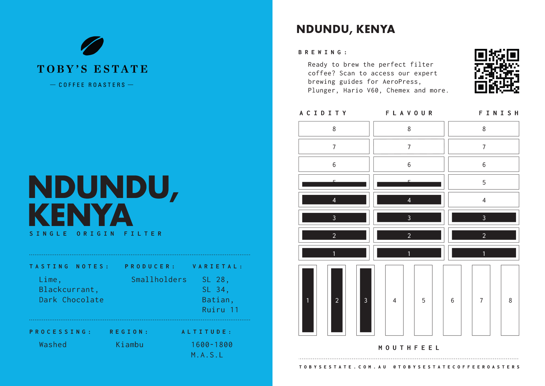 This one comes from the Ndundu factory, part of the Thiririka Farmers Cooperative Society, the largest cooperative in Kiambu County. It's the kind of coffee that’s easy to drink every day, but still feels exciting – a cracker opener in a strong run of African coffees