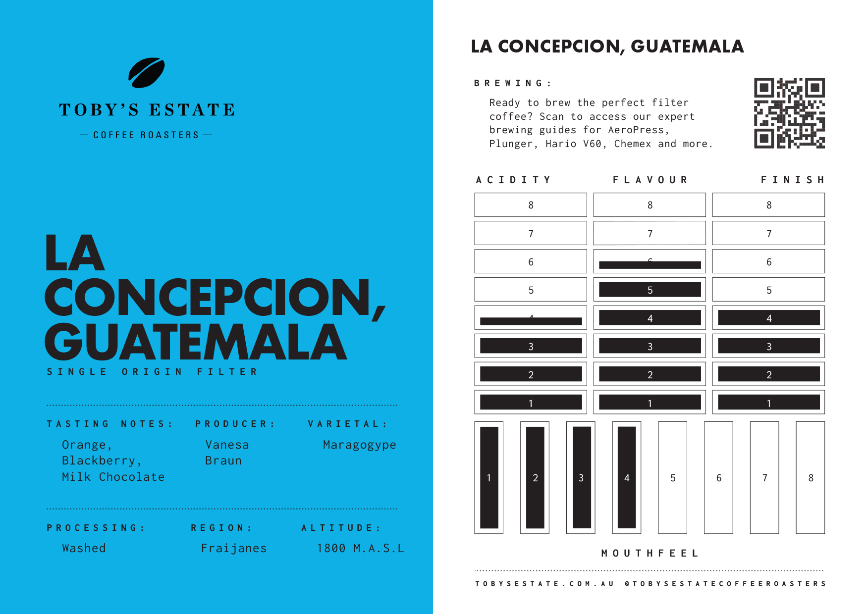 A rare washed Maragogype, this filter lot is syrupy, refined, and balanced. Citric and malic acidity meet chocolate undertones, while subtle hints of berry add complexity. Flavour notes: orange, blackberry, and milk chocolate.