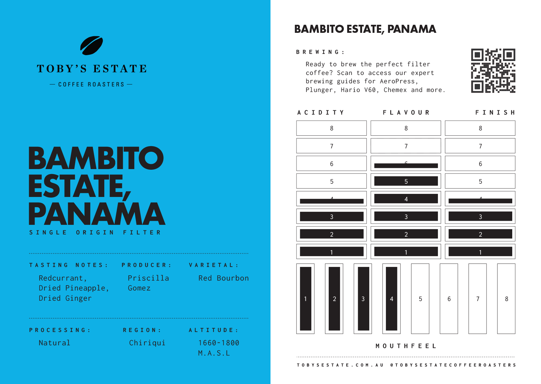 At elevation in Volcán Barú, the Amar Sittón family’s Red Bourbon lot is hand-picked, sorted, and dried over three to four weeks. The microclimates of the farm lend dimension to the cup: redcurrant, dried pineapple, and dried ginger appear gently layered.