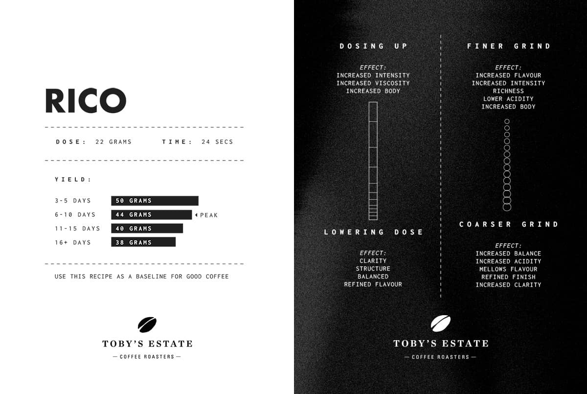 The Toby’s OG blend, Rico is rich and fruity with fruit, honey and milk chocolate notes. View the recipe card to brew the perfect cup.