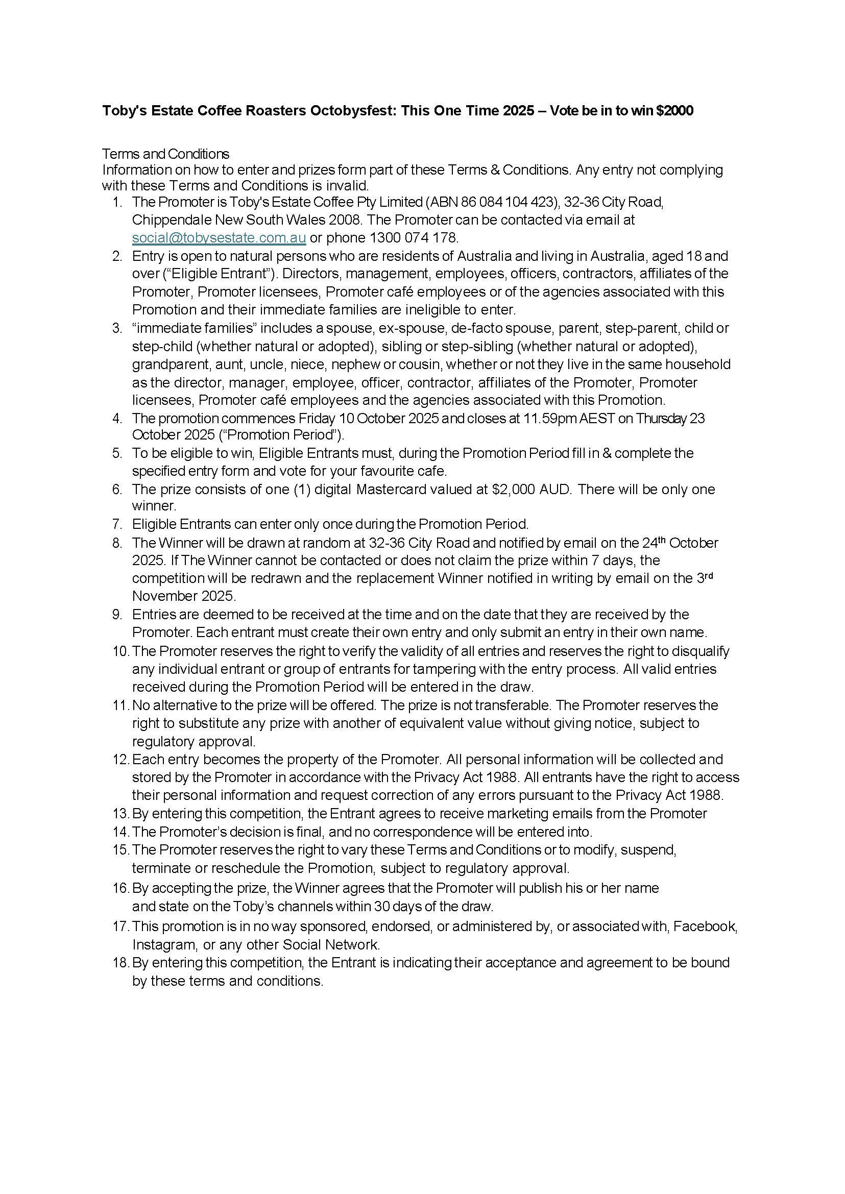Only one vote per person, competition is open to Australian residents only, aged 18 years and over. Vote between 10th October 2025 to 11.59pm AEST, 23rd October 2025.